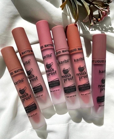Жидкая матовая губная помада karite mask proof - стойкая муссовая текстура, популярные нюдовые оттенки. Предварительно можно нанести бальзам для губ,а для контура использовать карандаш для губ. Для большей стойкости наложи легкий слой пудры и далее нанеси необходимое количество жидкой матовой помады апликатором на центральную область губ, и распределить по направлению к краям. Данное средство для макияжа обладает комфортной кремовой текстурой, обеспечивает плотное покрытие и насыщенный цвет в течение дня, а пудровые микросферы заполняют морщинки, визуально делая губы гладкими и бархатистыми. Жидкая стойкая матовая помада для губ - это удачный выбор для создания повседневных, праздничных, романтических и ультрамодных образов.