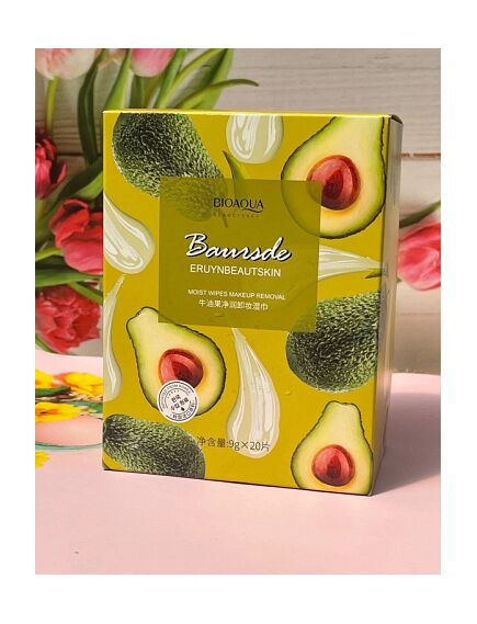 Влажные салфетки, пропитанные целебным экстрактом авокадо, - отличный способ быстро и тщательно очистить кожу лица от декоративной косметики и внешних загрязнений. Используйте мягкие хлопковые салфетки в поездках, на отдыхе, в пути, а также в любых ситуациях, требующих экономии времени и сил. Средство обеспечивает качественное очищение лица, не допуская при этом избыточно агрессивного воздействия на эпидермис. Мягкие вещества позволяют без опасений удалять макияж даже с деликатной зоны вокруг глаз. Салфетки не содержат спирта и масел, благодаря чему вы избавлены от необходимости использования воды и дополнительных смывающих средств. Активные ингредиенты в составе справятся с самыми сложными загрязнениями, включая любую декоративную косметику