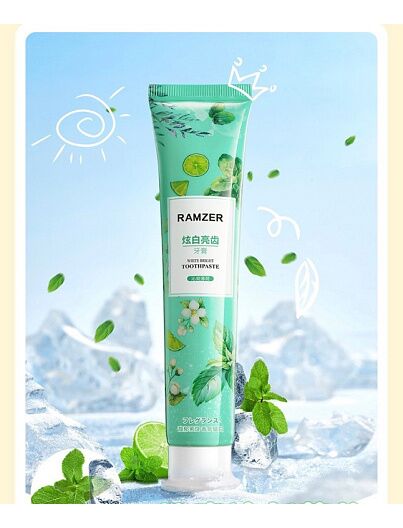 Зубная паста RAMZER White Bright 100гр (зеленая)