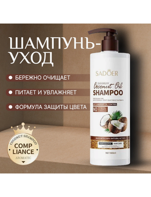 SADOER Шампунь для нормальных и склонных к сухости волос Coconut Oil Shampoo 500мл