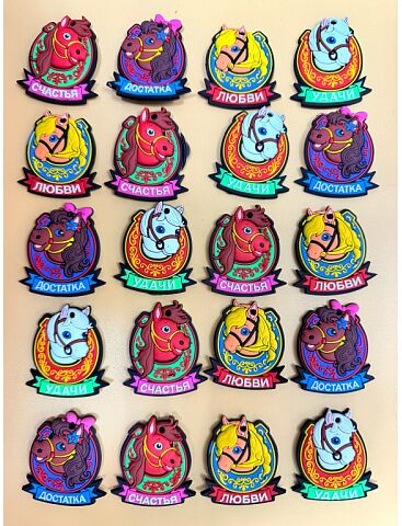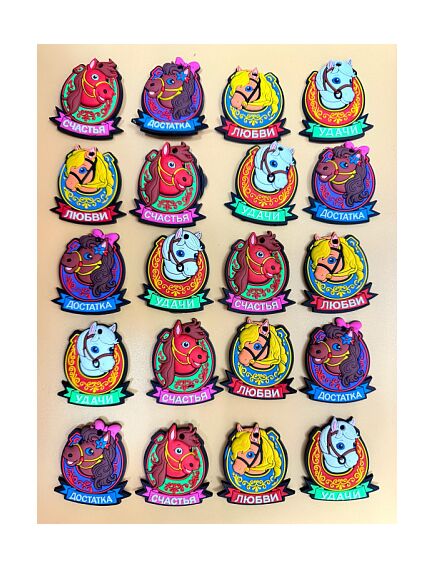 Новогодние магниты с символом года Лошадь на холодильник являются прекрасным и доступным подарком на Новый год!Они идеально подходят в качестве сувенира и открытки для близких и родных!