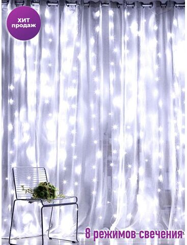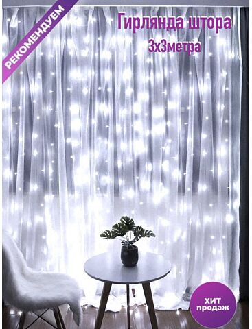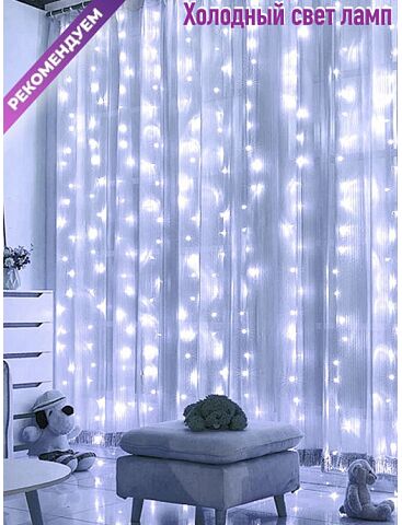 Тканевые шторы на заднем фоне гирлянды в комплект не входят, цена указана за гирлянду