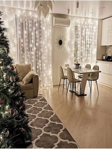 Тканевые шторы на заднем фоне гирлянды в комплект не входят, цена указана за гирлянду