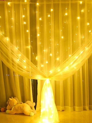 Тканевые шторы на заднем фоне гирлянды в комплект не входят, цена указана за гирлянду