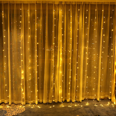 Тканевые шторы на заднем фоне гирлянды в комплект не входят, цена указана за гирлянду