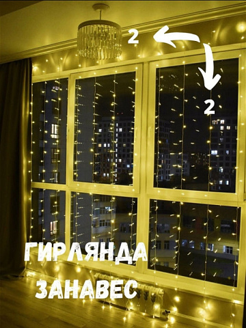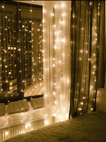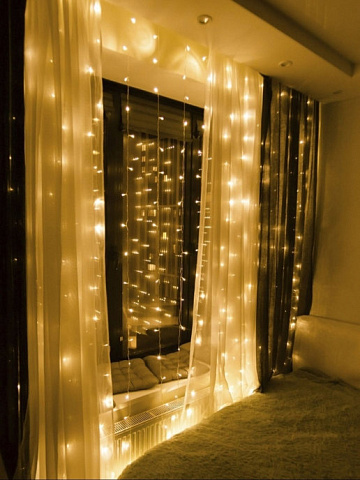 Тканевые шторы на заднем фоне гирлянды в комплект не входят, цена указана за гирлянду