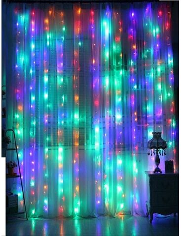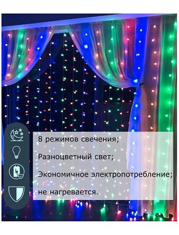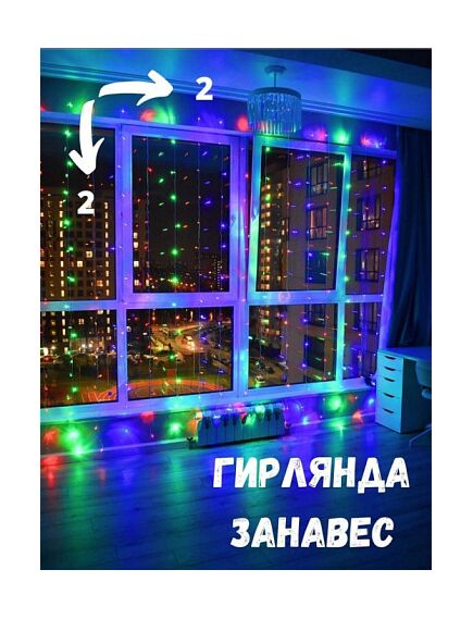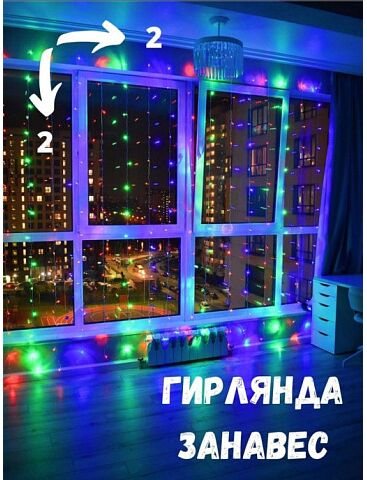 Тканевые шторы ,на заднем фоне гирлянды, в комплект не входят, цена указана за гирлянду