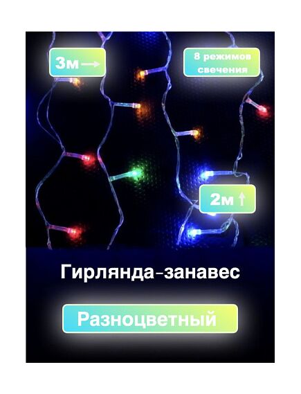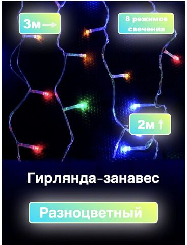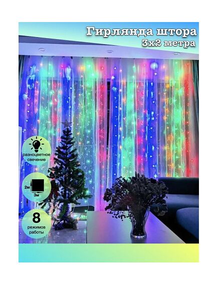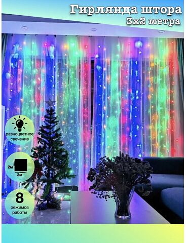 Гирлянда шторы мультицвет 3х2м