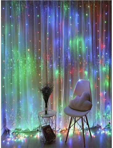 Тканевые шторы на заднем фоне гирлянды в комплект не входят, цена указана за гирлянду,ширина 3 м, высота 2м