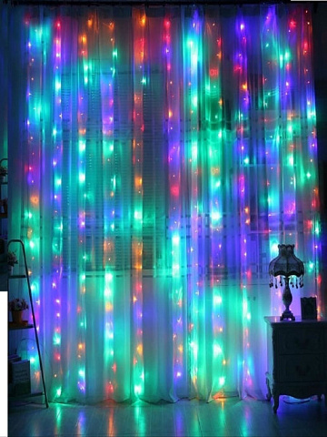 Тканевые шторы ,на заднем фоне гирлянды, в комплект не входят, цена указана за гирлянду