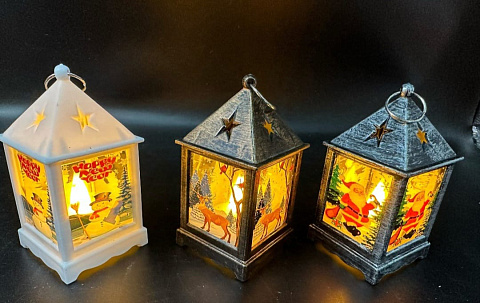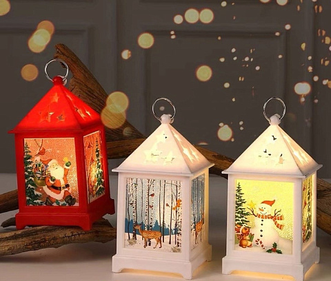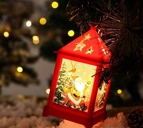 Рождественский Фонарь ночник размером 13*5,5 см будет заметен издалека и украсит новогоднюю композицию. Подвесной фонарь-свеча-это елочная игрушка, а также самостоятельный предмет декора, который украсит любое помещение и создаст уютное освещение. Есть колечко для переноски или подвешивания. -