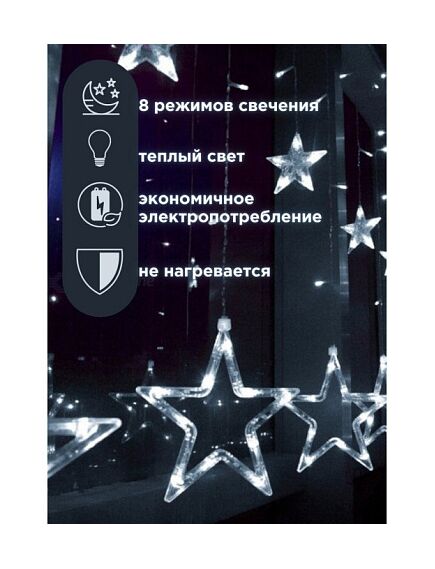 Светодиодная гирлянда занавес Звезды на окно белый