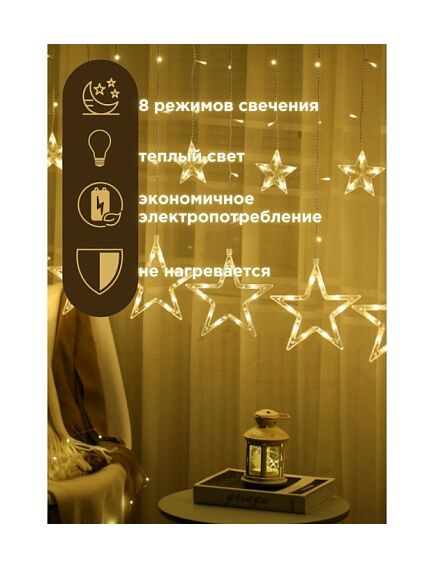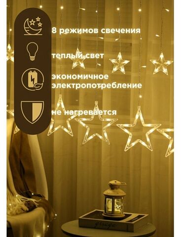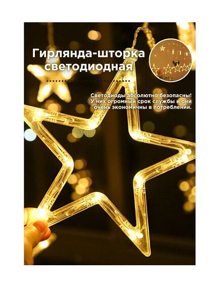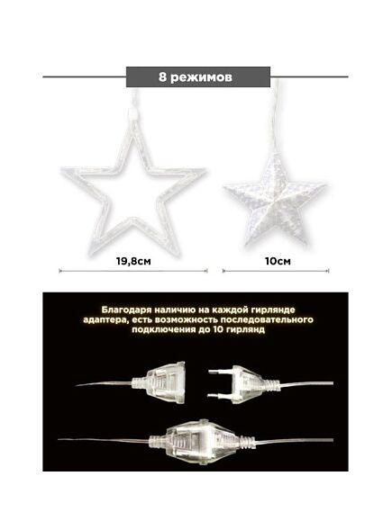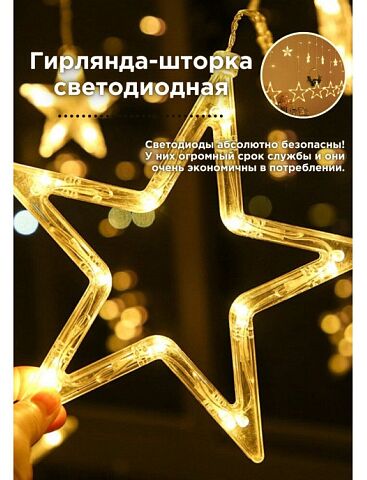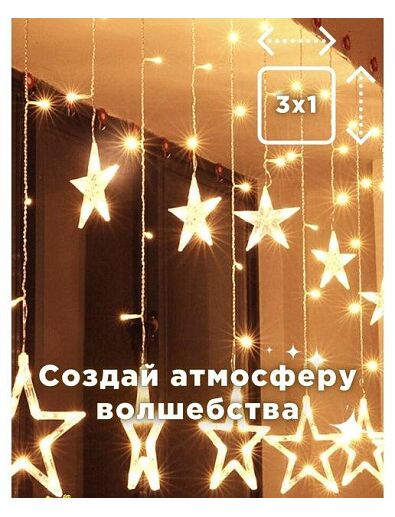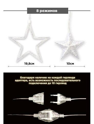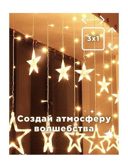 Гирлянда звезды на окно является одним из наиболее красивых и ярких украшений, которое преобразит окошко или стены в вашем доме. Особенно в темное время суток, светодиоды создадут необычную и уютную атмосферу, украшенный объект превратится в небо, усыпанное звездами.- размер 3х1м