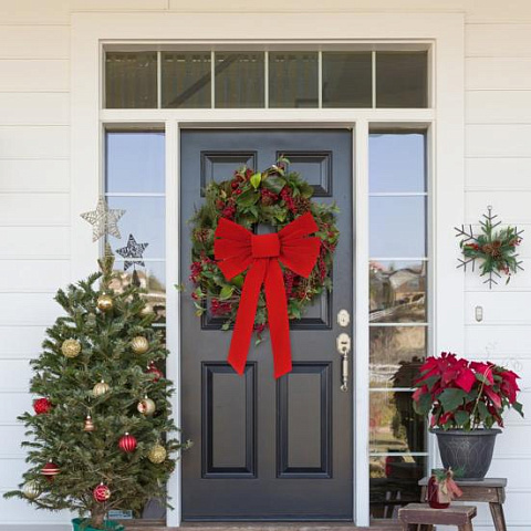 Украшение бант используется для декорирования помещения в период новогодних праздников. Может подвешиваться к еловой ветке, располагаться на столе или полке