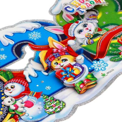Бумажное панно Сноу Бум для новогодних декораций. Панно из бумаги - легко повесить на стену или на дверь.