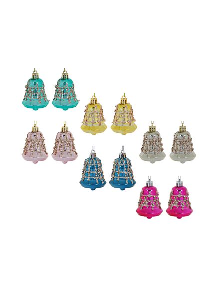 СНОУ БУМ Премиум Набор подвесок "Колокольчики" 5х6,5см, 2 шт, пластик, пайетки, 6 цветов