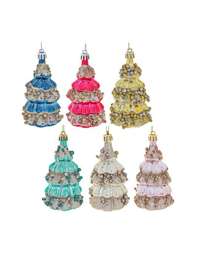 СНОУ БУМ Премиум Подвеска "Елочка" 10 см, пластик, пайетки, 6 цветов