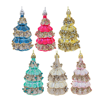 СНОУ БУМ Премиум Подвеска "Елочка" 10 см, пластик, пайетки, 6 цветов