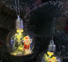 Светящиеся новогодние игрушки в ассортименте, без выбора.Размер 10 см*9 см.Батарейки в комплекте.