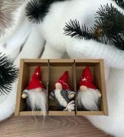 Новогодние игрушки Гномики в коробке (3 шт).Размер игрушки: 9 см.Размер коробки: 17 см*11 см.