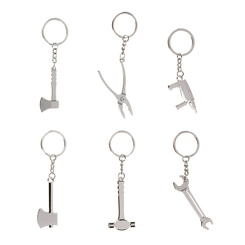 Подарите мужчине металлический брелок в форме инструмента, и он будет вспоминать о вас каждый раз, уходя на работу и возвращаясь домой. В ассортименте кувалда, пассатижи, дрель, топор, молоток и гаечный ключ. Серебристый цвет, минималистичный технодизайн.