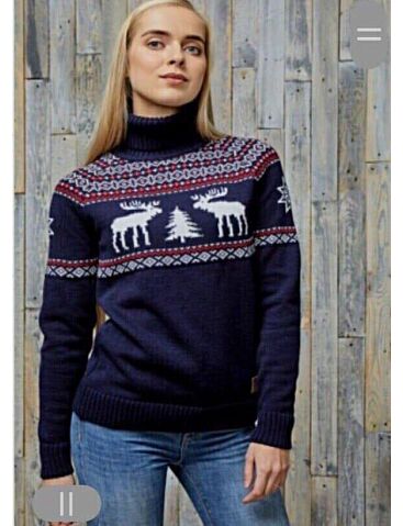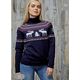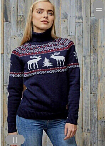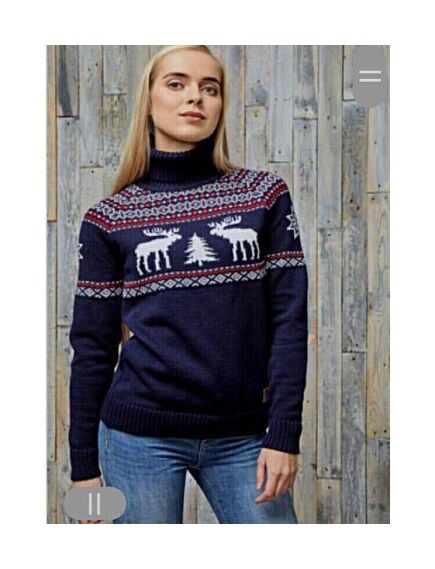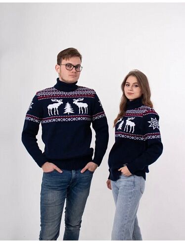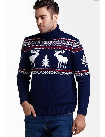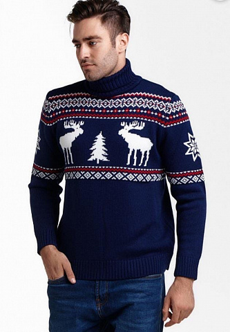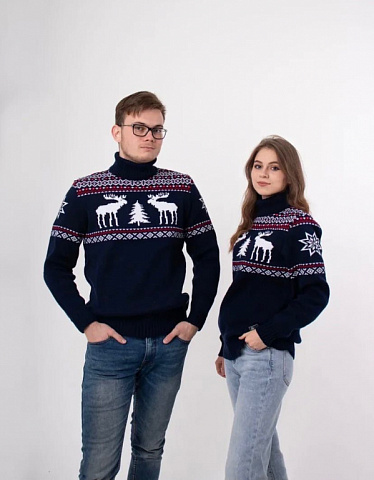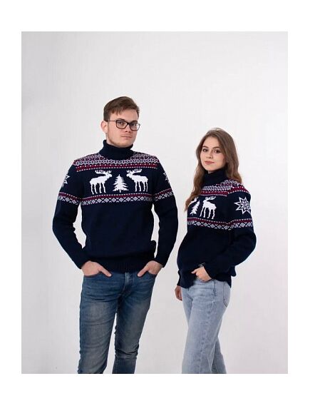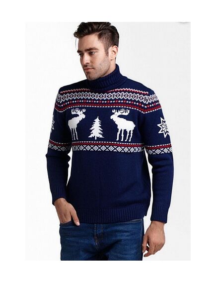 Свитер с высоким горлом синий Два оленя и елка 114/12 размер S