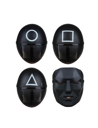 Маски с перфорацией по мотивам популярного сериала. Дополнят костюм для вечеринки, Хеллоуина или корпоратива. Качественный пластик , фабричное производство. В ассортименте 4 маски: квадрат, круг, треугольник и ведущий.