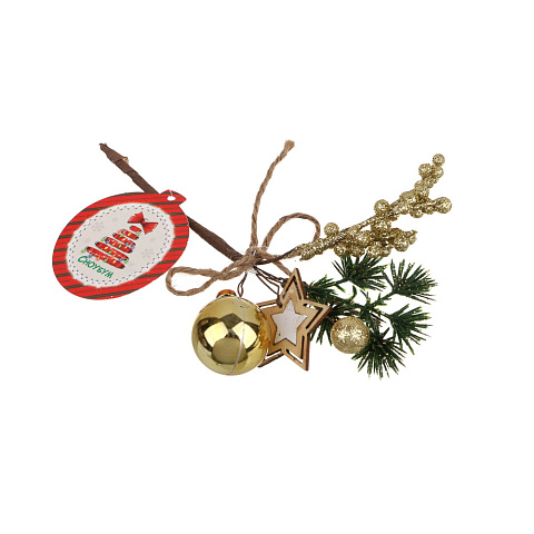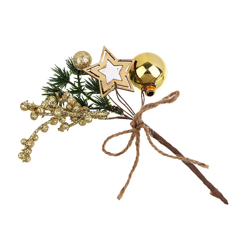 Благородная хвоя, изящное растение, блестящее украшение – нарядная ветка очаровательна и очень эффектна. Такое жизнерадостное украшение оживляет интерьер, придавая ему настоящего новогоднего шарма и зимней свежести. Размер 16 см