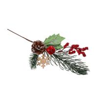 Великолепный элемент новогодних композиций - хвойная ветка с яркими алыми ягодками и снежинками. Особенно здорово смотрится в сочетании с праздничными огоньками новогодних гирлянд. Высота 20 см....
