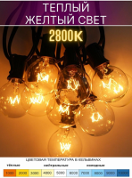 Гирлянда уличная садовая выполнена в ретро стиле с лампочками в виде шара, водонепроницаемая и морозостойкая IP44. Длина гирлянды 7,5 метров, длина провода от последней лампы до вилки 16 см, расстояни...