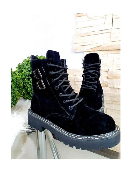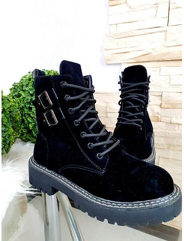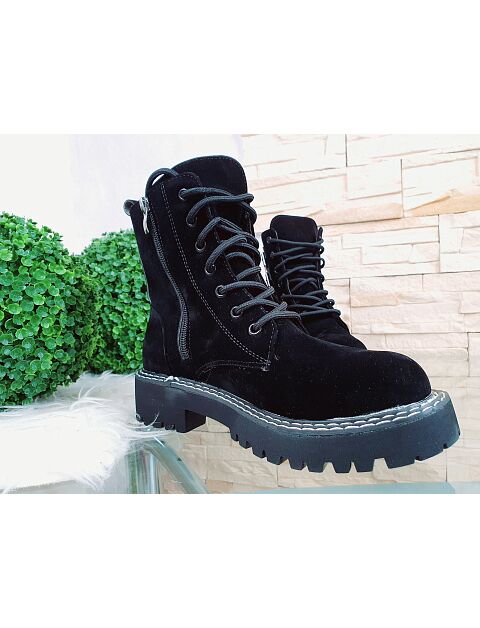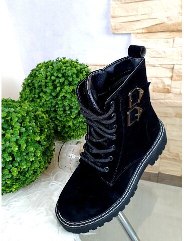 Ботинки женские черные. Весна-Осень. Замшевые. Арт 5-7