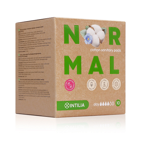 Гринвей Женские хлопковые гигиенические прокладки INTILIA с хитиновой вставкой, дневные, 10 шт