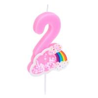 Свеча парафиновая для торта в форме цифр FNtastic в розовом цвете с декором в виде облочка с радугой украсит торт по случаю дня рождения девочки. Прекрасный вариант для семейных фотографий и фотосесси...