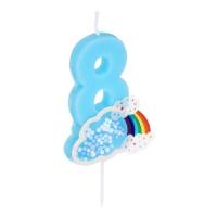 Свеча парафиновая для торта в форме цифр FNtastic в голубом цвете с декором в виде облочка с радугой украсит торт по случаю дня рождения мальчика. Прекрасный вариант для семейных фотографий и фотосесс...