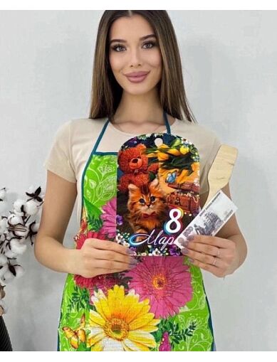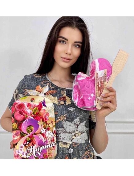 Подарочный набор 8 Марта - доска разделочная, лопатка, набор прихваток, сувенир-купюра