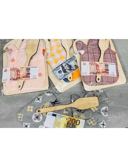 Набор: доска разделочная, лопатка, прихватка, рукавица, купюра.В ассортименте, без выбора