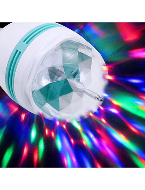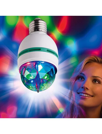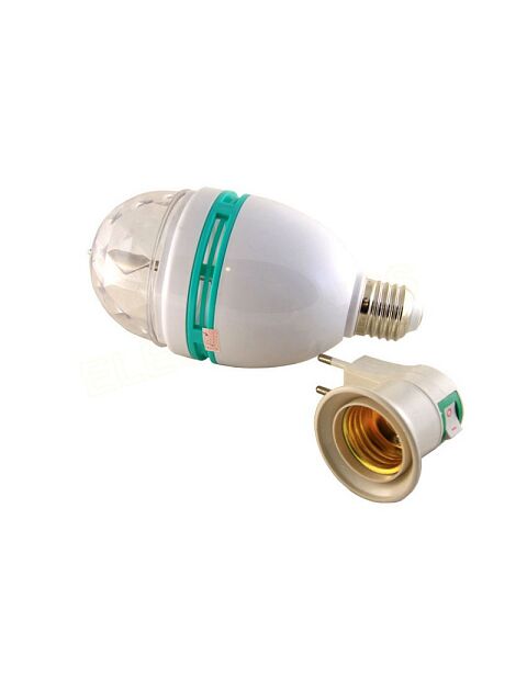 Где хотите устроить праздник, там и используйте эту LED лампу. Просто вкрутите в обычный цоколь или с помощью углового переходника с кнопкой вкл/выкл вставьте в розетку. Получите незабываемый эффект в стиле диско.Стандарт патрон Е27 под любую люстру или светильник + переходник