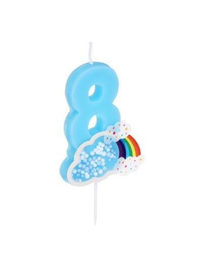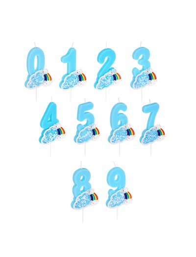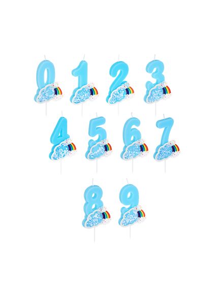 Свеча парафиновая для торта в форме цифр FNtastic в голубом цвете с декором в виде облочка с радугой украсит торт по случаю дня рождения мальчика. Прекрасный вариант для семейных фотографий и фотосессий – свечка будет замечательно смотреться на миниатюрном тортике в соответствующем стиле. Цифры от 0 до 9 в ассортименте.