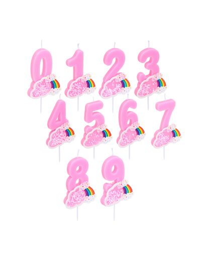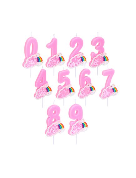 Свеча парафиновая для торта в форме цифр FNtastic в розовом цвете с декором в виде облочка с радугой украсит торт по случаю дня рождения девочки. Прекрасный вариант для семейных фотографий и фотосессий – свечка будет замечательно смотреться на миниатюрном тортике в соответствующем стиле. Цифры от 0 до 9 в ассортименте.