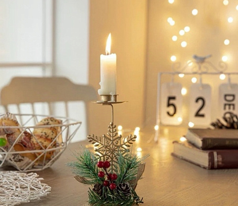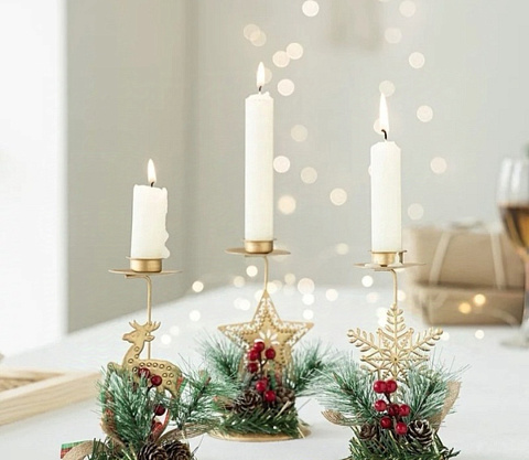 новогодний дизайн подсвечника создаст праздничное настроение и уют в оформлении интерьера