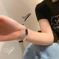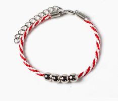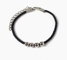 Браслет шнурок Черный + 4 бусины Длина 18,5см+5см