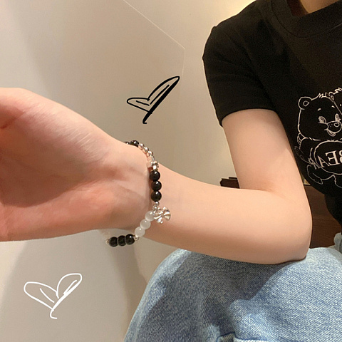 Браслет Черные бусины с бантиком Цвет серебро Арт. Б-37
