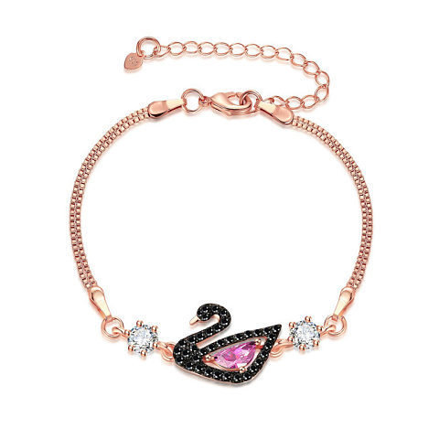 Браслет Лебедь черный с белыми камнями Цвет золото Арт. Б-82