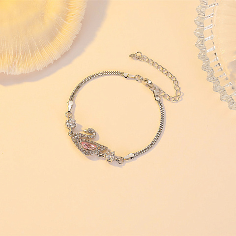 Браслет Лебедь с белыми камнями Цвет серебро Арт. Б-83
