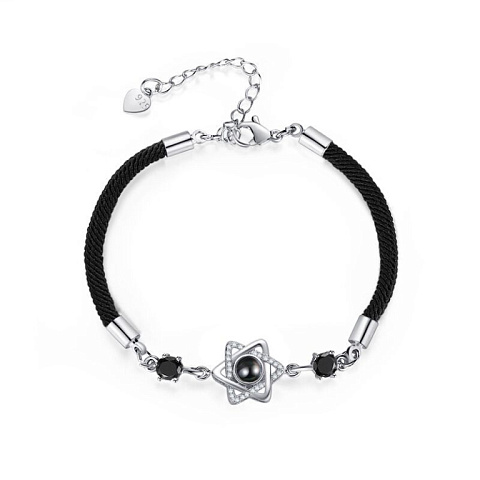 Браслет-проектор черный с черным камнем Цвет серебро Арт. Б-44