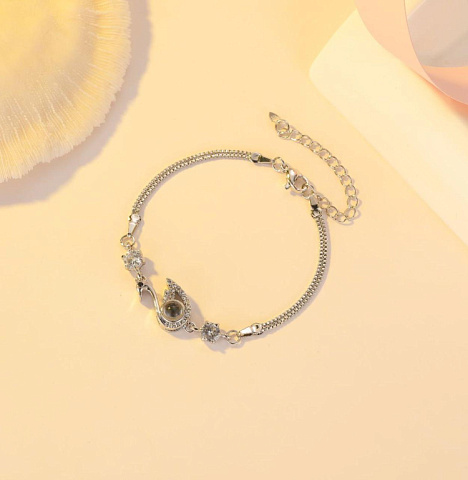 Браслет - проектор Лебедь с белыми камнями Цвет серебро Арт. Б-79