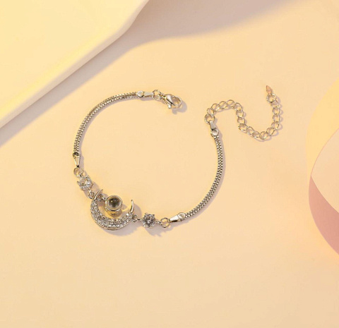 Браслет - проектор Луна с белым камнем Цвет серебро Арт. Б-76