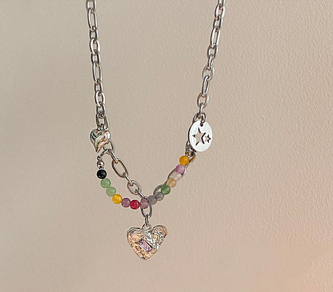 Колье цепь с бусинами/сердцем Цвет серебро Арт. К-19