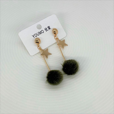 Серьги Шарики пушистые со звездочкой Цвет зеленый Арт. С-04