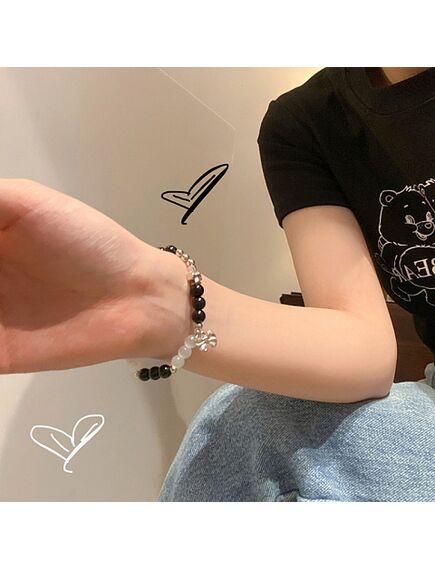 Браслет Черные бусины с бантиком Цвет серебро Арт. Б-37